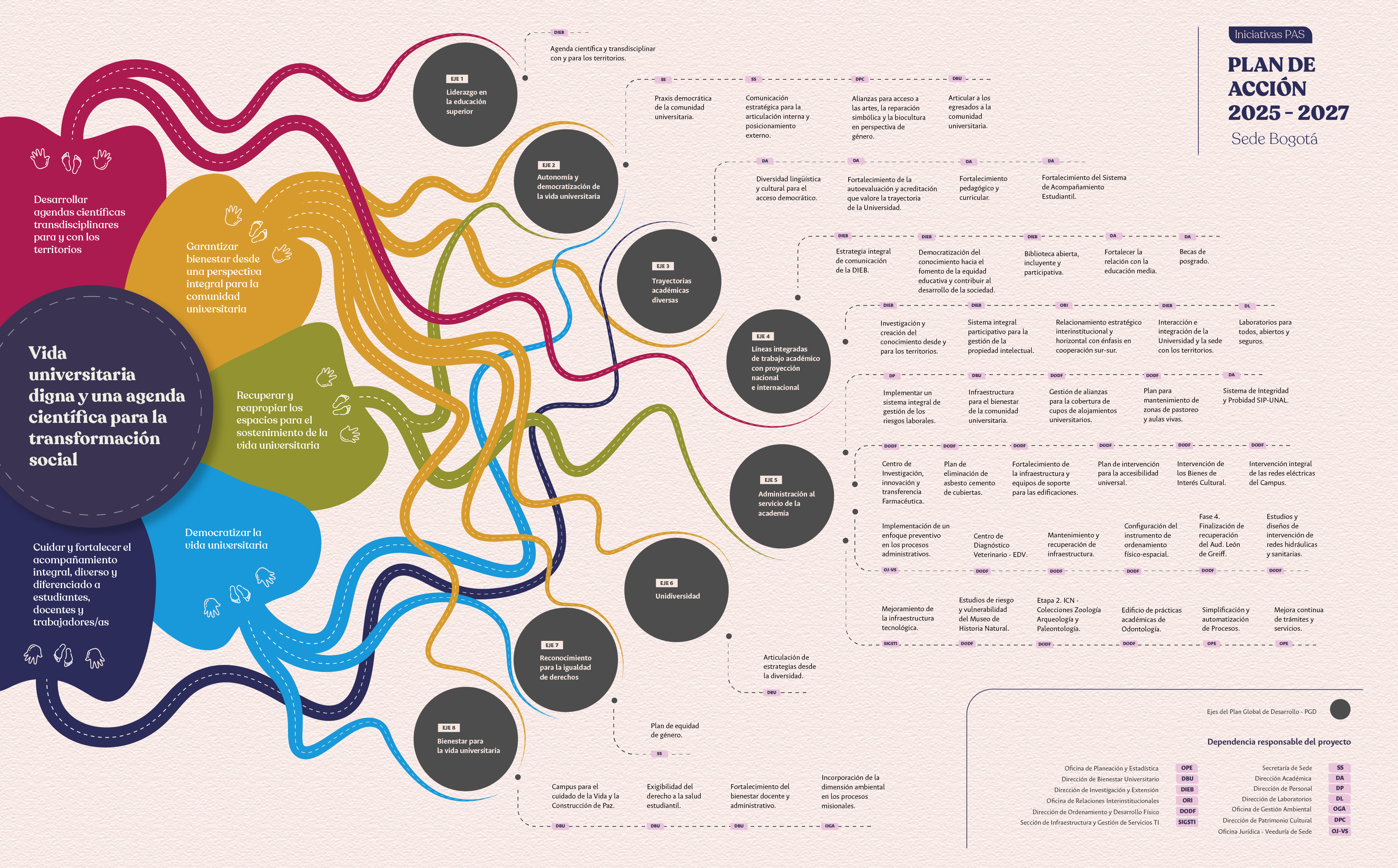 Conoce nuestro plan que establece un conjunto de acciones dirigidas a promover el cuidado individual y colectivo de la comunidad universitaria y a fortalecer las capacidades instaladas en nuestras comunidades académicas para potenciar el liderazgo de la Sede Bogotá en la construcción de la agenda académica, científica, cultural y artística.